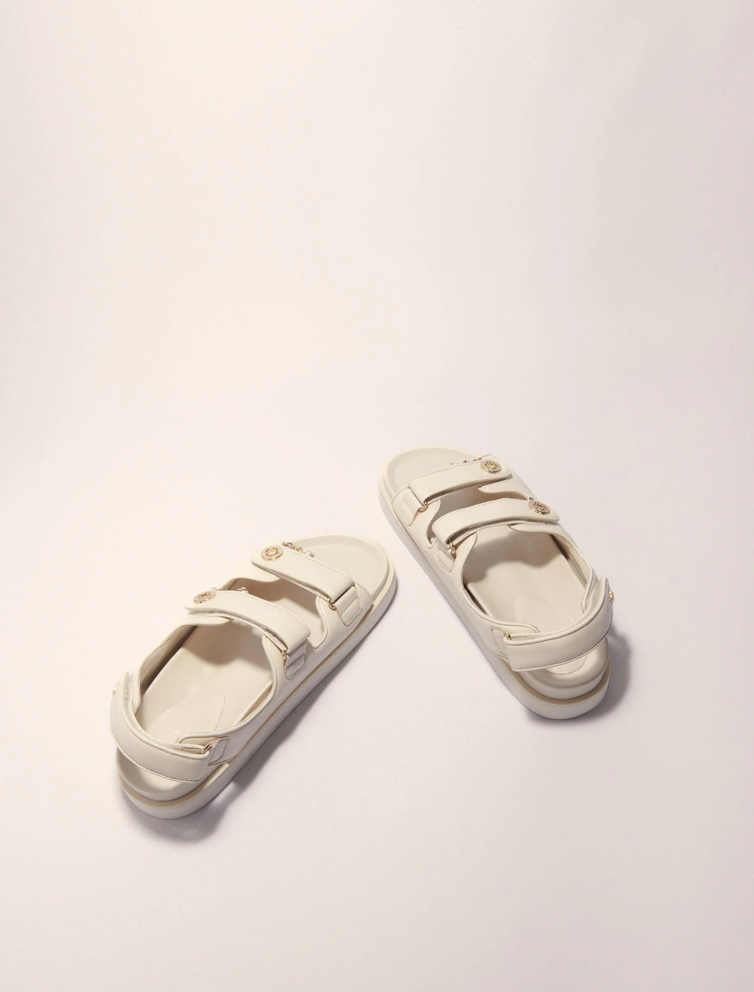 Alongside adjustable straps with hook-and-loop fastenings, these flat plain leather sandals boast Maje buttons, a bold detail to add the finishing touch to your look. Ideal for warm weather, you can mix and match them with your favourite denim or a print dress. |