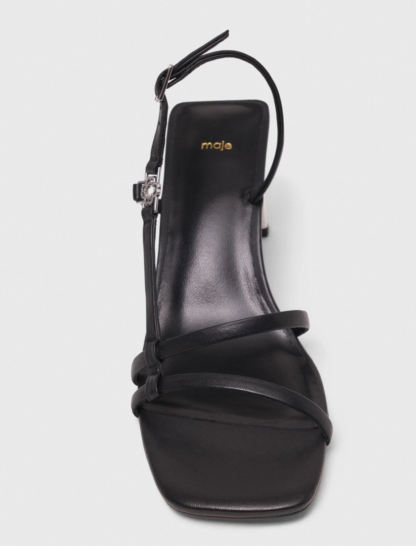 These fine strap sandals combine minimalism with precious details. Fastened with a Clover buckle, they stand on a straight metallic heel, for a confident look from morning to night.