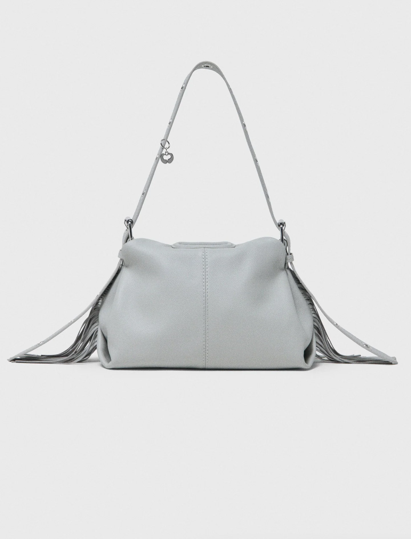 Its long, adjustable strap, adorned with eyelets and large buckles, offers versatile carrying options: wear it short for a bold look, on the shoulder for a city vibe, or crossbody for a more practical touch.