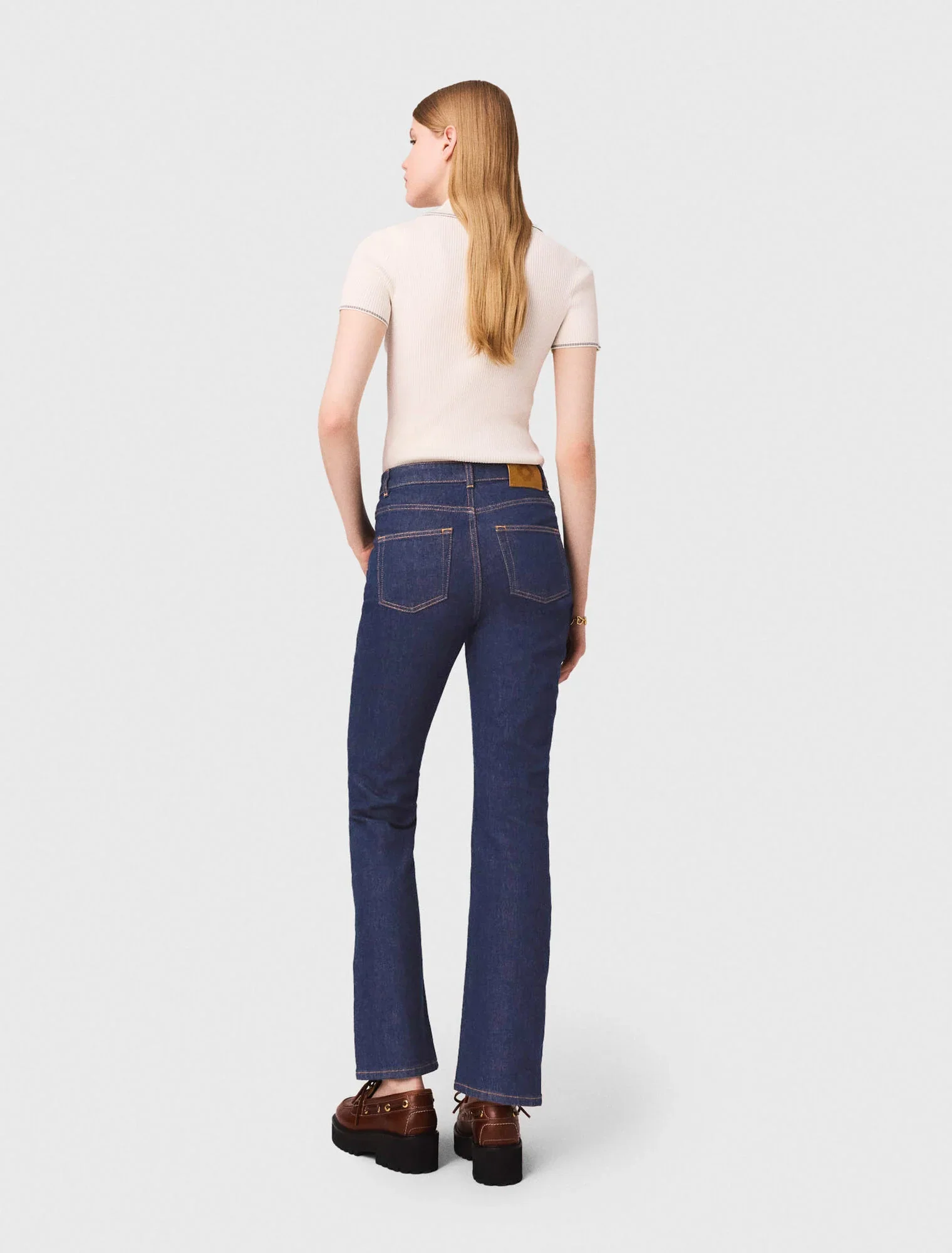 These raw denim jeans have a flattering straight cut and contrast stitching. With a high waist, 5-button fastening and two patch pockets on the front and back.
