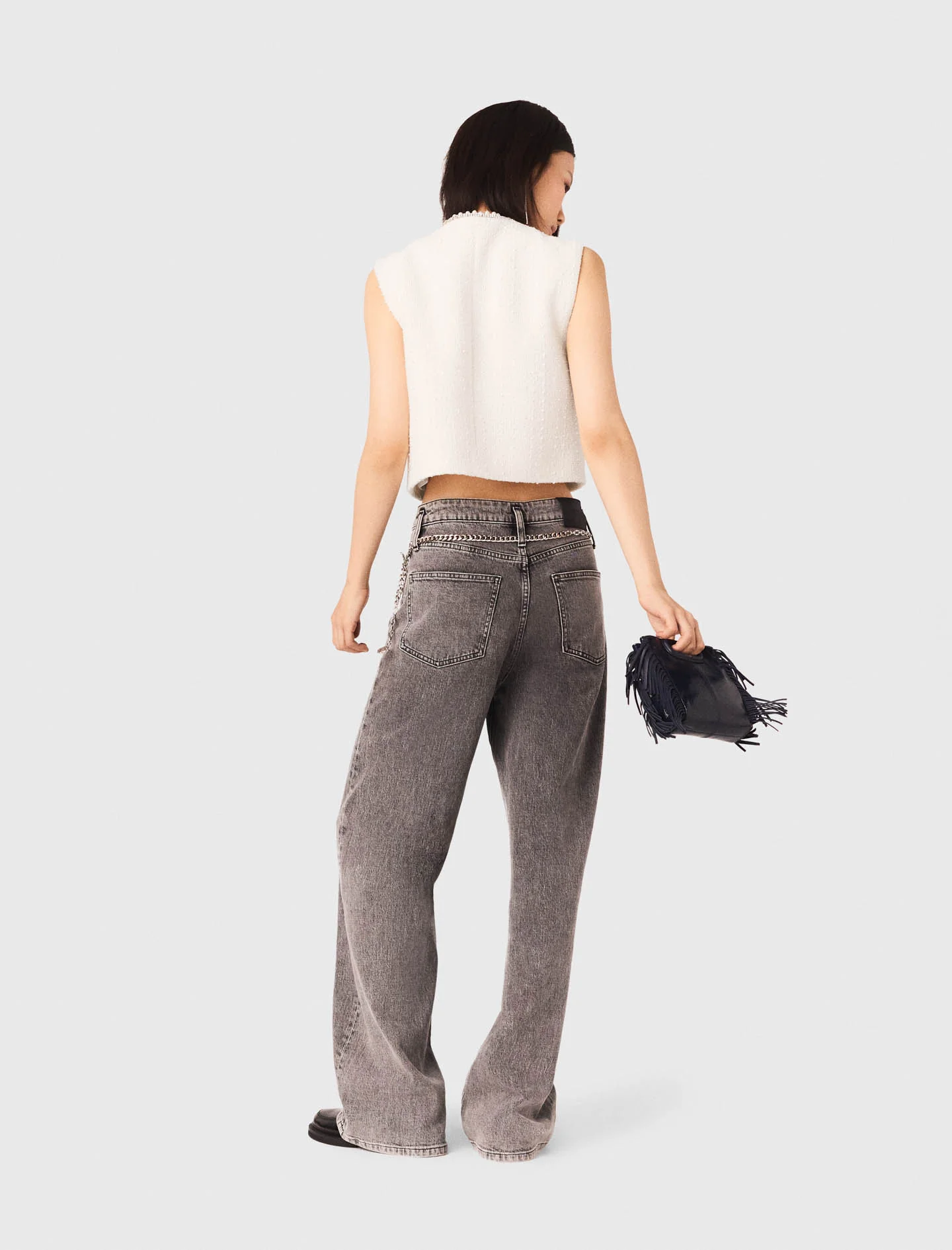 Wear it over wide-leg grey jeans and add a Miss M mini for a sophisticated, urban silhouette.